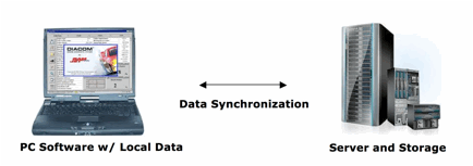 | A client-server system typically runs a piece of software on your computer, and saves data in the computer's hard disk drive. Your local data needs to be synchronized with the data on the server, and possibly data on other clients. |