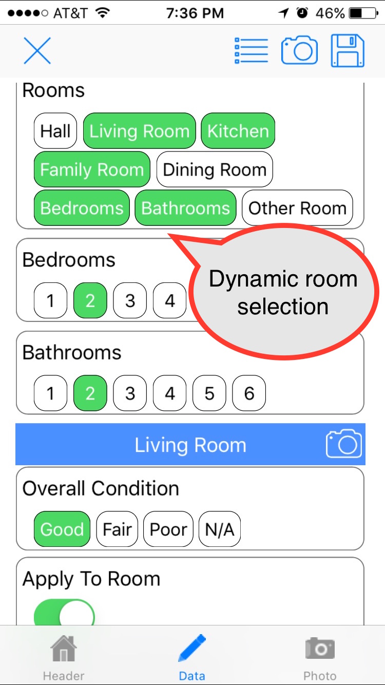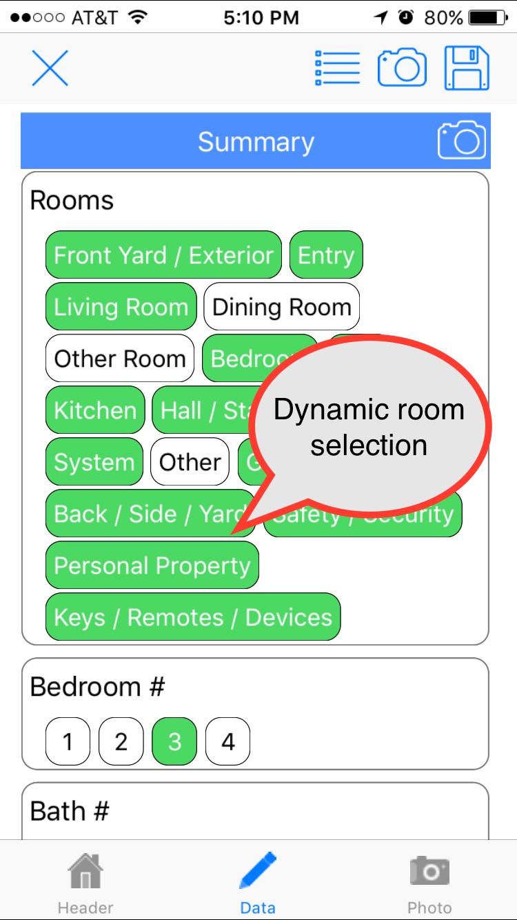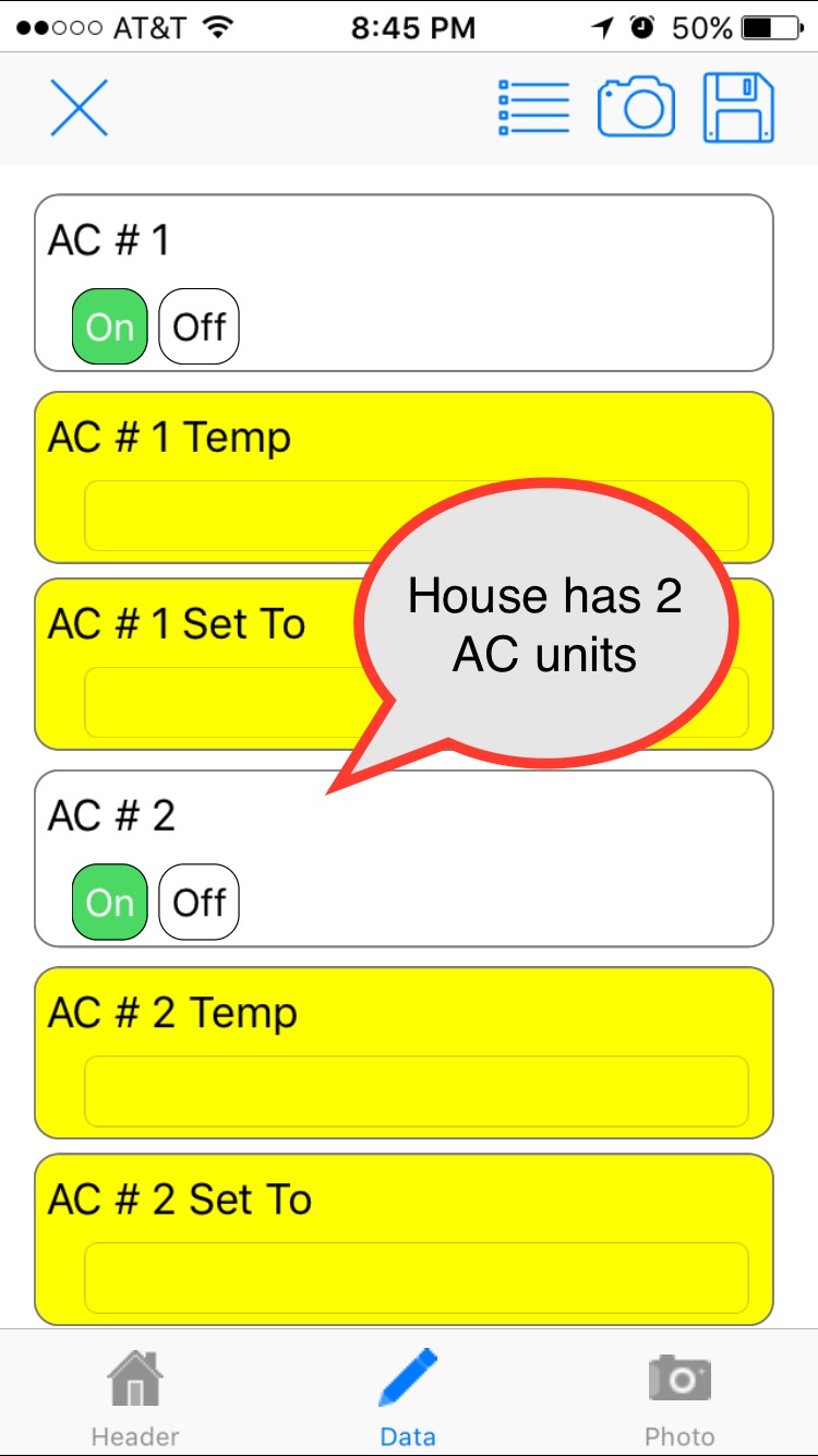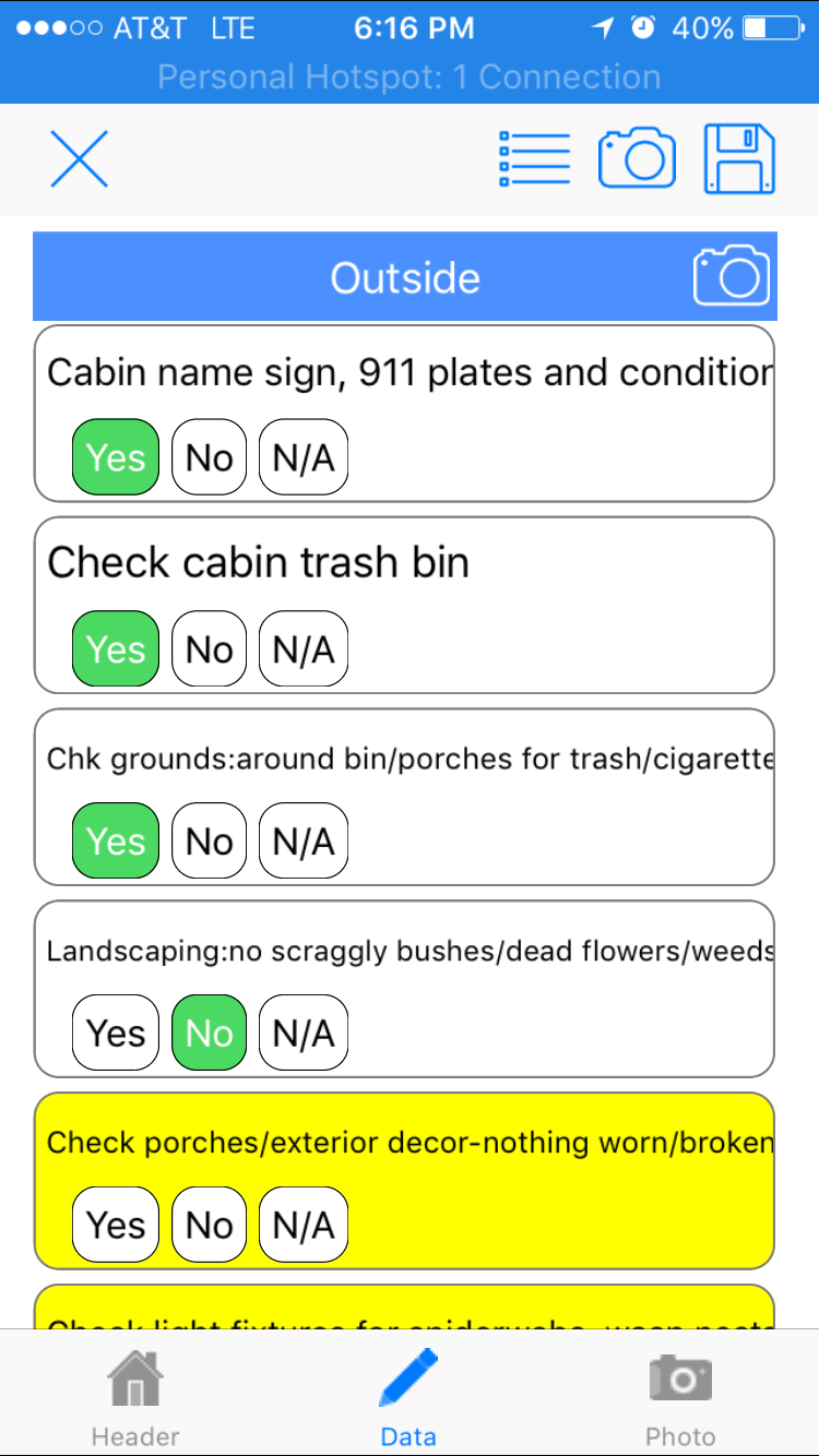 | This is the pre-arrival inspection form. The form is dynamic, e.g., if the home has 2 thermostats, 2 sets of AC questions are displayed. Ditto for 1 or 3 thermostats. Office alerts can be set up for specific answers, e.g., TV remote is not working. |