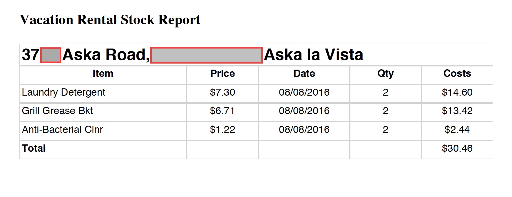 | This is the form for checking stock items in the property. You can add fee to each stock item, e.g. $2.50 for each coffee filter. With the fees, monthly stock invoice can be created and sent to the client. |